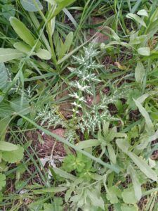 Sobre suelos removidos, pastizales y en los bordes del camino, crecen durante otoño e invierno las hojas tiesas y erizadas con relámpagos blancos de la Calcida