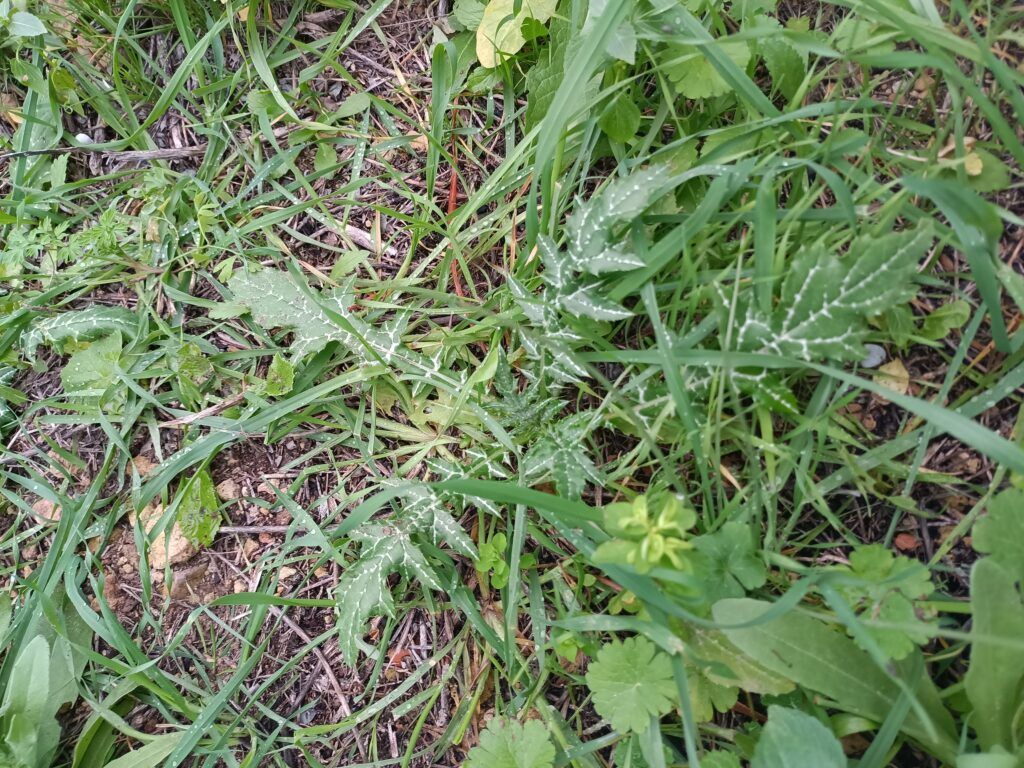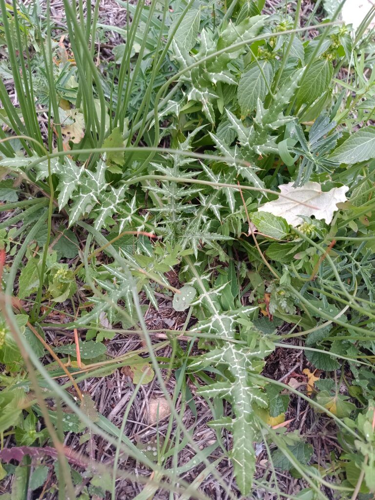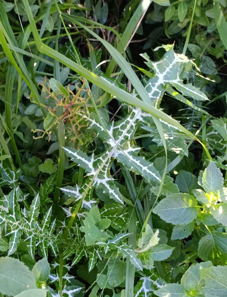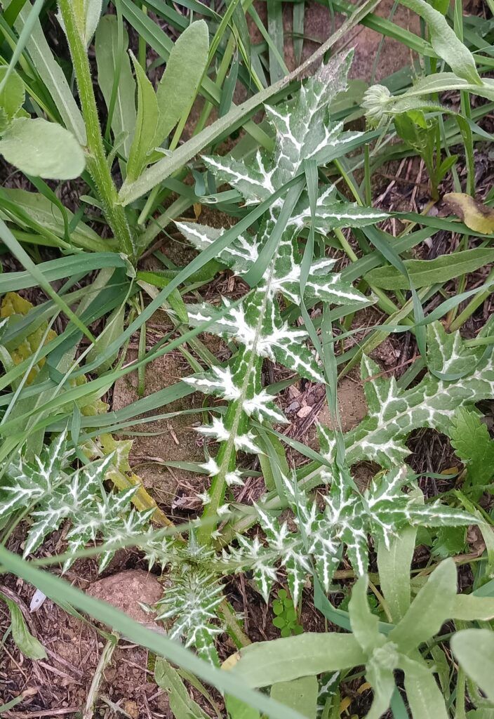 Sobre suelos removidos, pastizales y en los bordes del camino, crecen durante otoño e invierno las hojas tiesas y erizadas con relámpagos blancos de la Calcida blanca, que, al llegar la primavera, ofrece sus estrellas púrpuras al mundo.