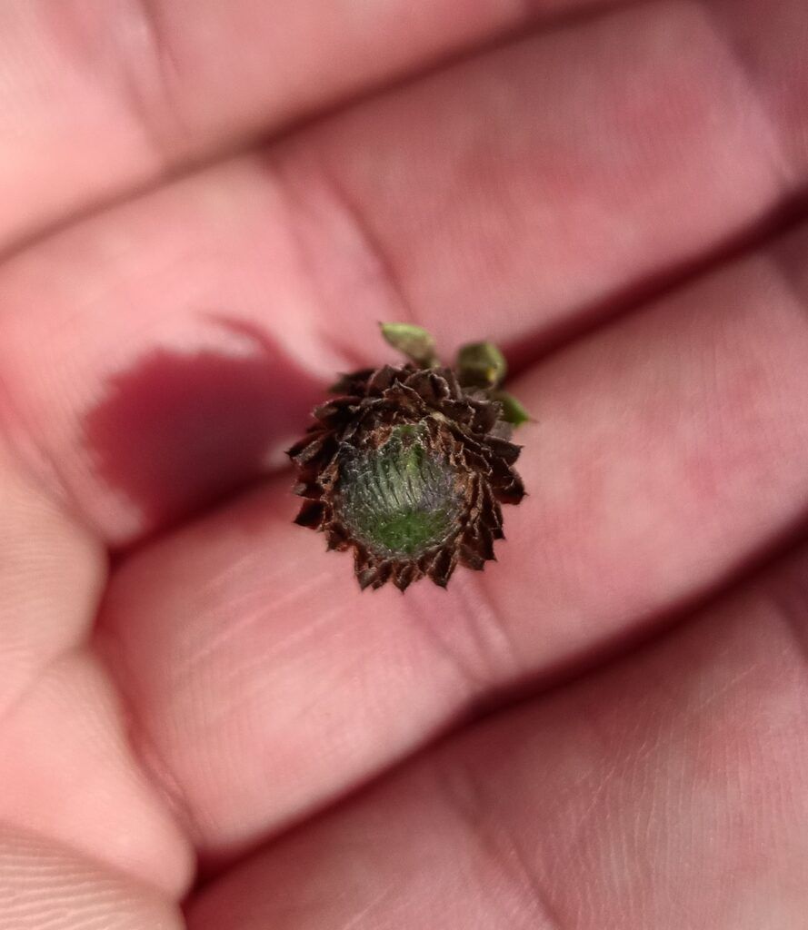 Su fruto es un aquenio rodeado por el cáliz persistente.