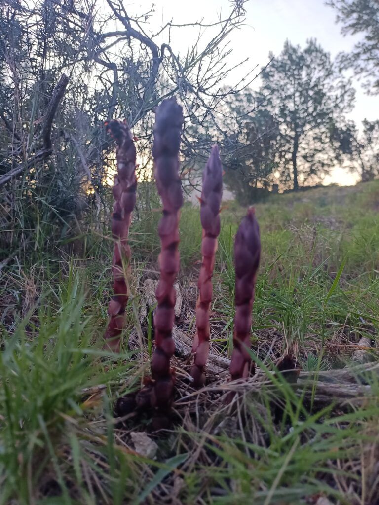 Entrellaçant les seves arrels amb les del romer, trenca la terra i dispara les seves espigues, alçades en flamerades violàcees… el jopo o frare del romaní.